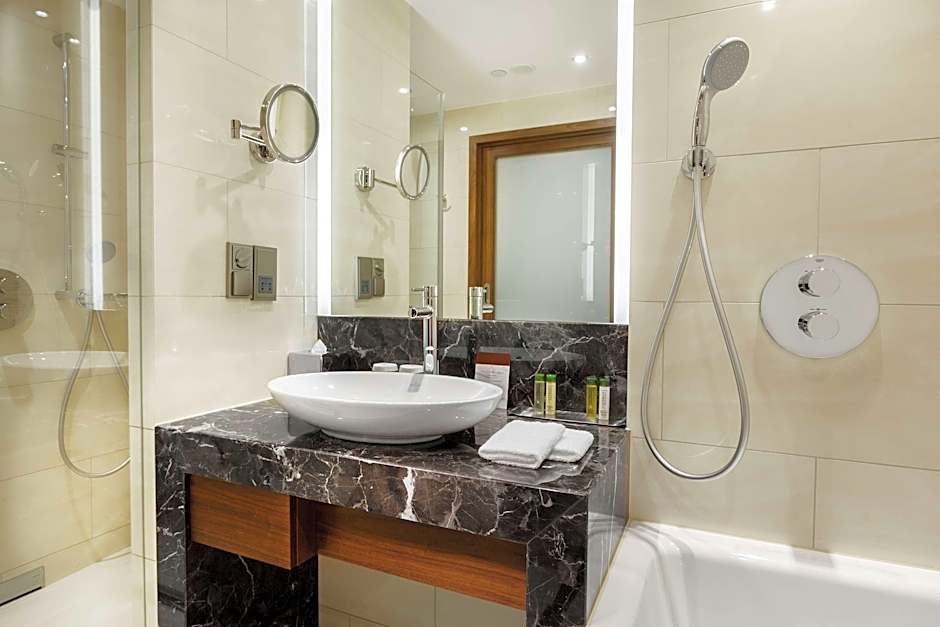 There is a stylish bathroom with a bath and a walk-in shower. This room also features a 40" flat-screen TV with satellite channels, an in-room safe, individually controlled air-conditioning and windows that open. Refreshments are available in the mini-bar, and there are tea/coffee making facilities. Guests have access to a Spa zone, Level Up, with a complex of saunas, sensation showers and a jacuzzi.
